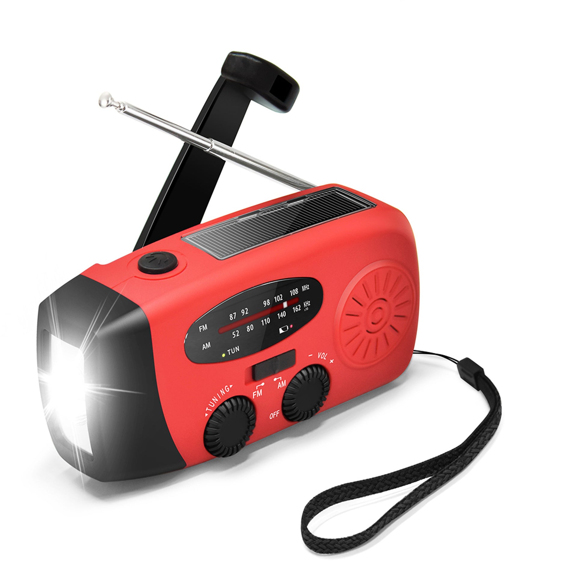 電源がない場合でも緊急充電できるように、このラジオには3種類の充電方法があります:USB充電、ソーラー充電、ハンドクランク充電。