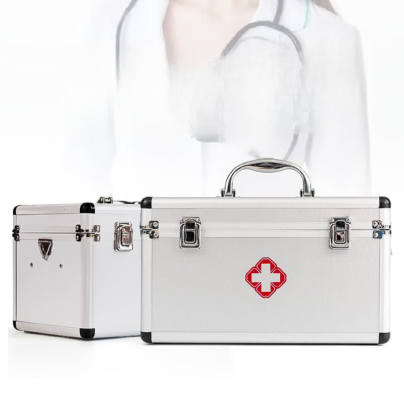 10寸铝合金药箱 * 1,一次性外科口罩 * 1,酒精棉片 * 1,碘伏棉棒 * 1,别针 * 1,创可贴 * 1,弹性绷带 * 1,不锈钢镊子 * 1,不锈钢剪刀 * 1,胶带 * 1,纱布垫 * 1,碘伏棉棒 * 1,酒精棉片 * 1,止血带 * 1,三角巾 * 1,弹性网帽 * 1,无菌敷料贴 * 1,体温计 * 1,退热贴 * 1,手套 * 1,晕车贴 * 1,薄荷脑 * 1,CPR呼吸面罩 * 1,急救手册 * 1,合格证 * 1,产品配置清单 * 1