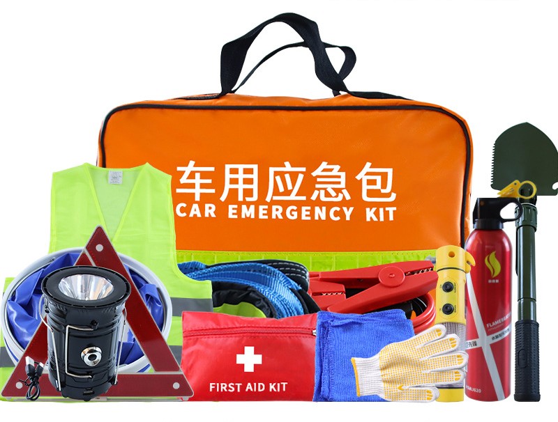 电池线 * 1,警示三脚架 * 1,多功能安全锤 * 1,拖车绳 * 1,水基灭火器 * 1,反光背心 * 1,防护手套 * 1,多功能铲 * 1,急救包 * 1