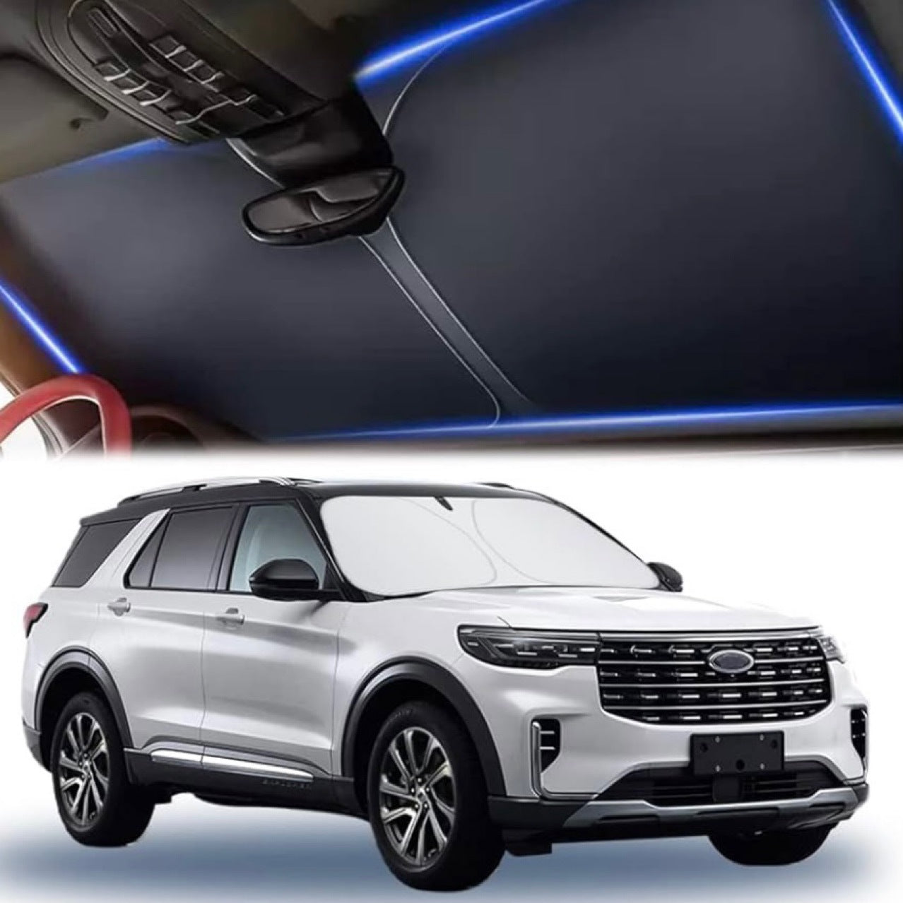 - 通用适配 – 63英寸×35英寸的遮阳板覆盖大多数轿车、SUV、小型货车和卡车的整个挡风玻璃;可调节的侧边带使其紧密贴合曲面玻璃。
