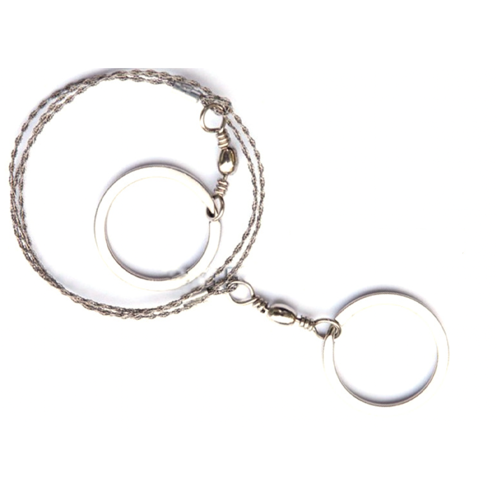 户外钢丝锯由拉环、旋转环和钢丝锯组成。其特点是采用四股钢丝交叉缠绕工艺,旋转环可360°旋转,使用灵活。